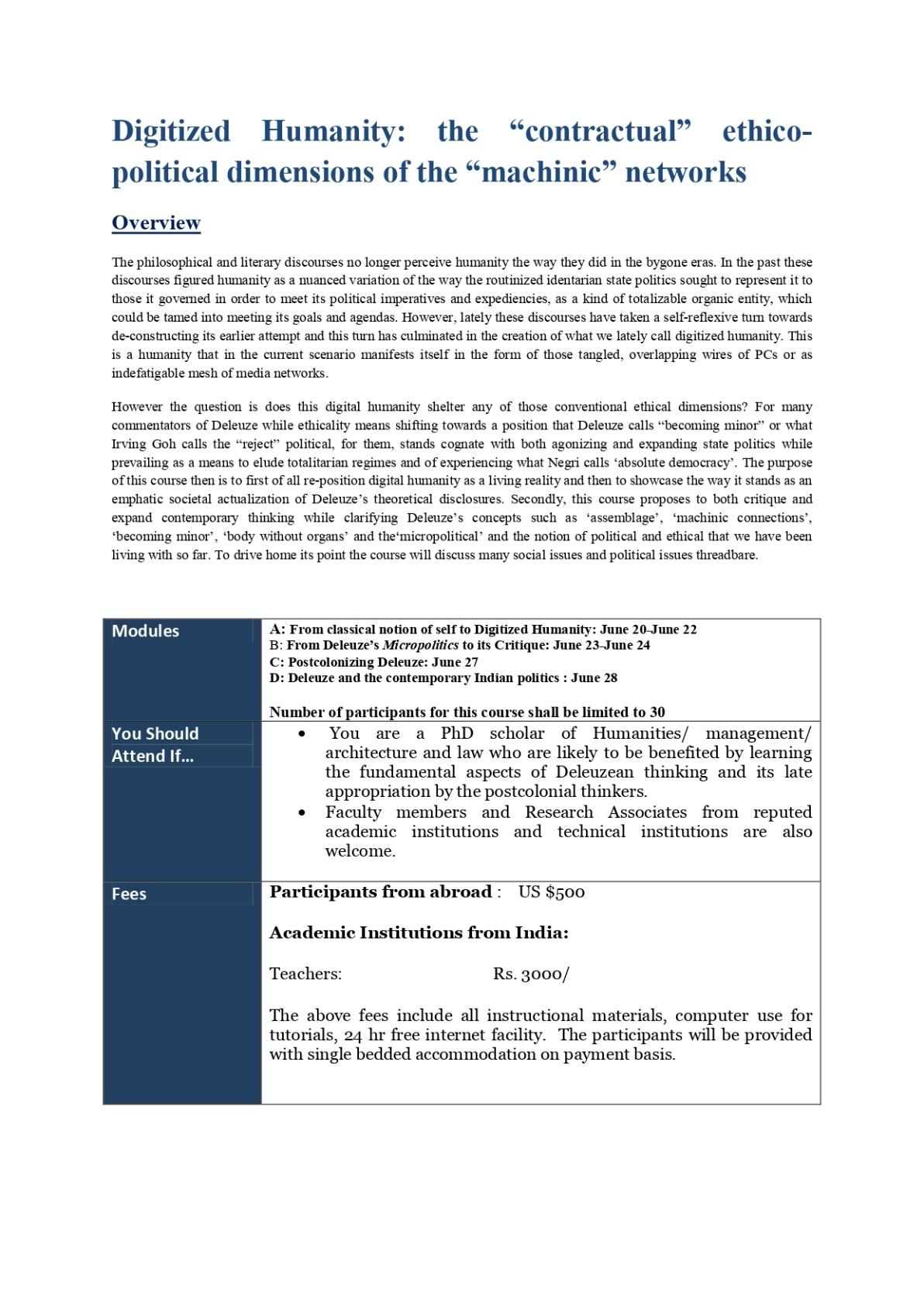 Digitized Humanity: The “Contractual” Ethico-Political Dimensions of the “Machinic” Networks (June 20th to 28th, 2016)