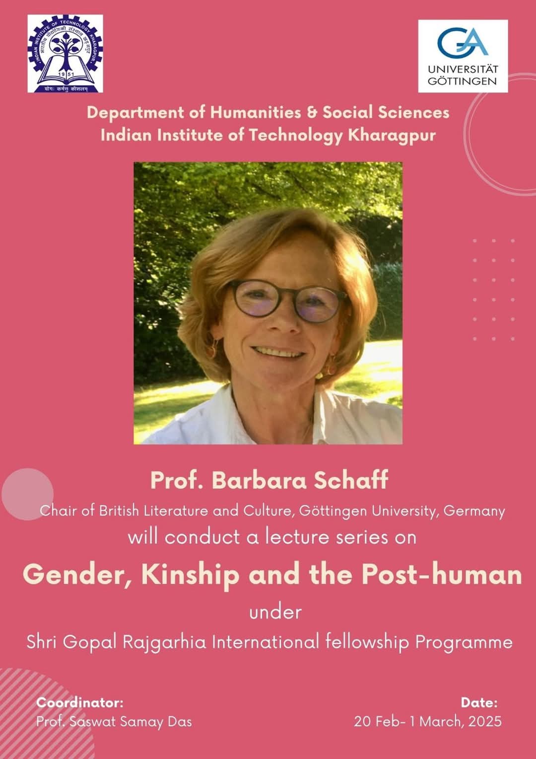 As part of the Shri Gopal Rajgarhia International Program (SGRIP) at IIT Kharagpur, Prof. Dr. Barbara Schaff delivered two lectures on Posthumanism on February 23 and 24, 2025.